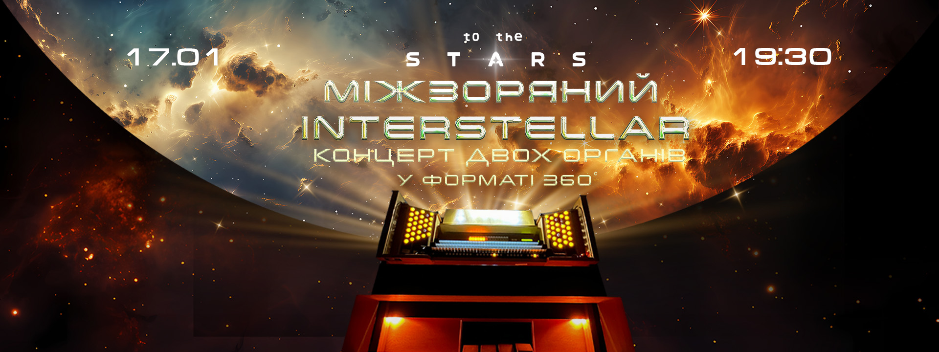 Київський Планетарій запрошує на повнокупольний концерт – Орган під зорями “Interstellar” під вражаючими відеопроекціями 360° на найбільшому куполі України.