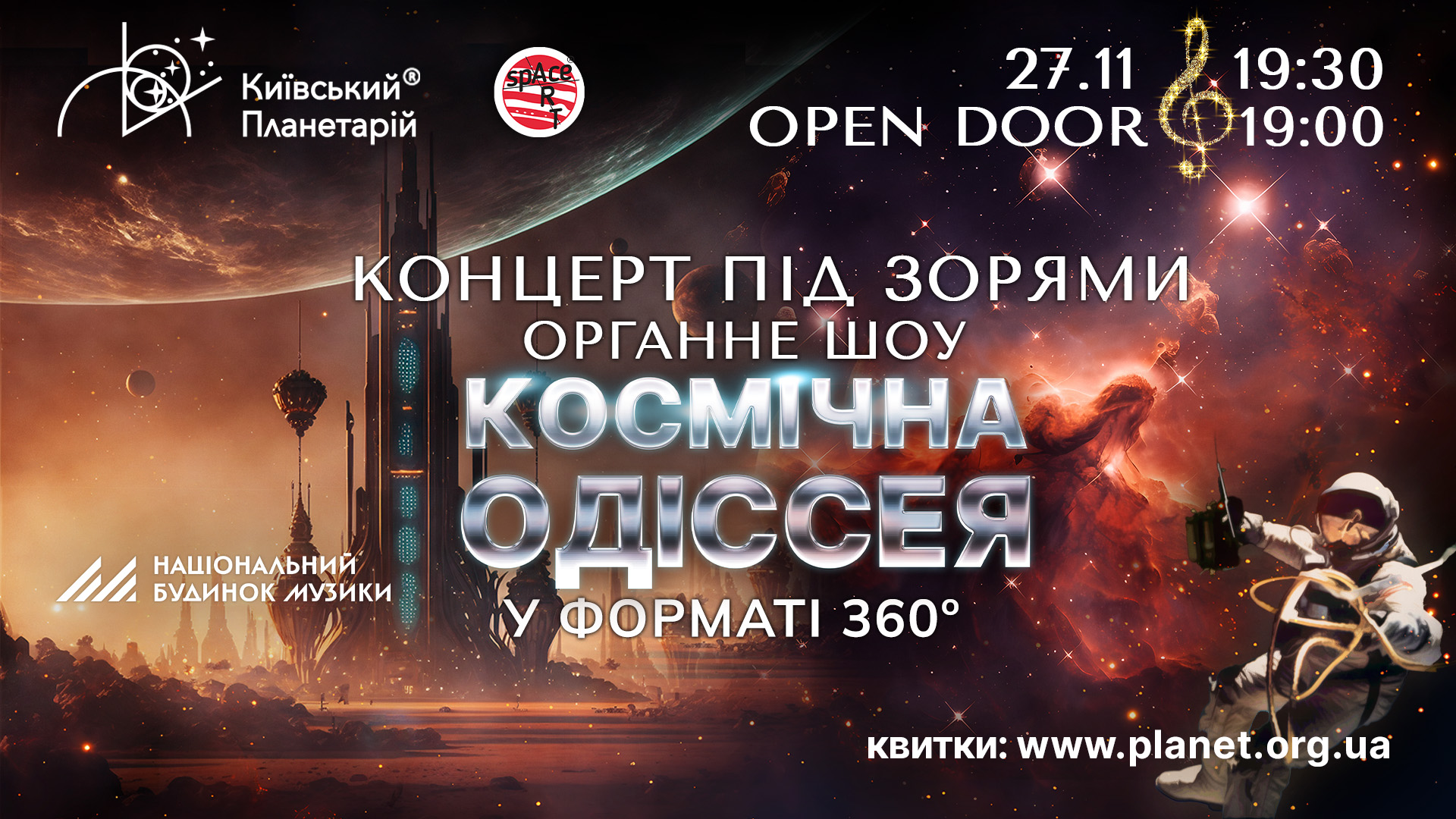 Київський Планетарій запрошує на повнокупольний концерт – Орган під зорями «Космічна Одіссея» за участю артистів Національного будинку органної музики України: