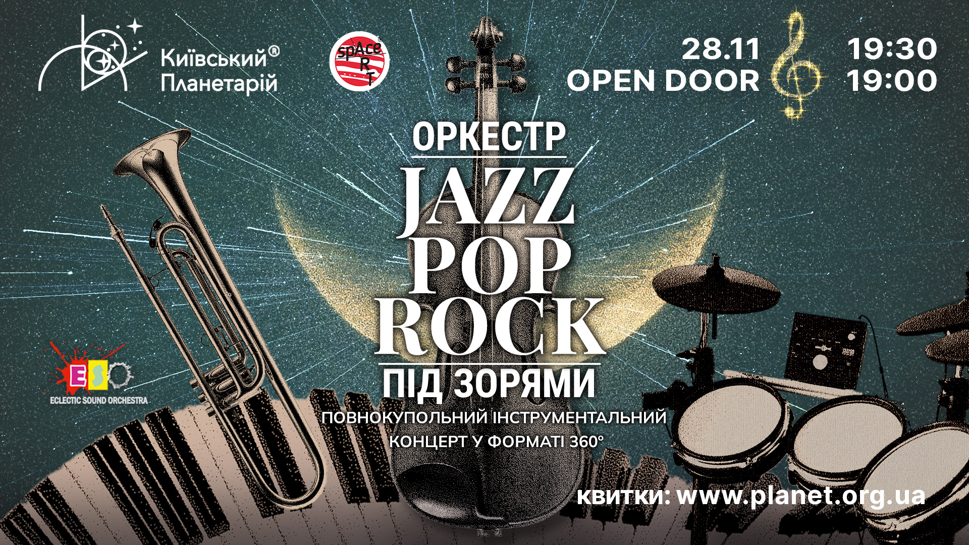 Київський Планетарій в рамках власного мистецького проекту ARTSpaceтм та оркестр Eclectic Sound Orchestra відновлюють вечори оркестрової музики. Оркестрове шоу “Jazz Pop Rock” повертається до зіркового неба Київського Планетарію.